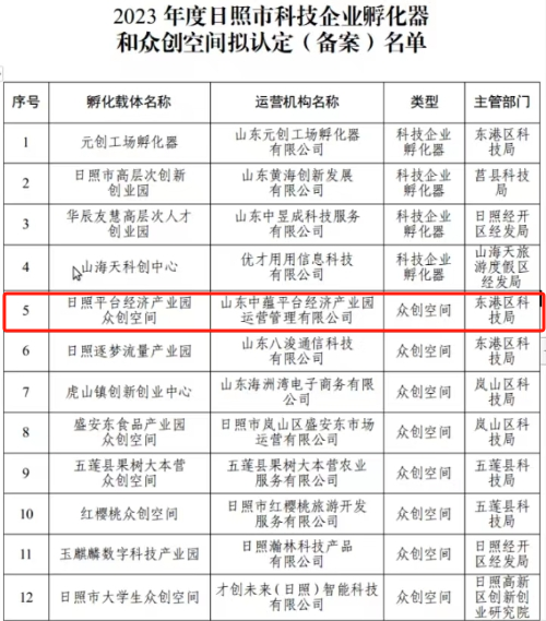 【喜报】日照平台经济产业园获批2023年度日照市市级众创空间