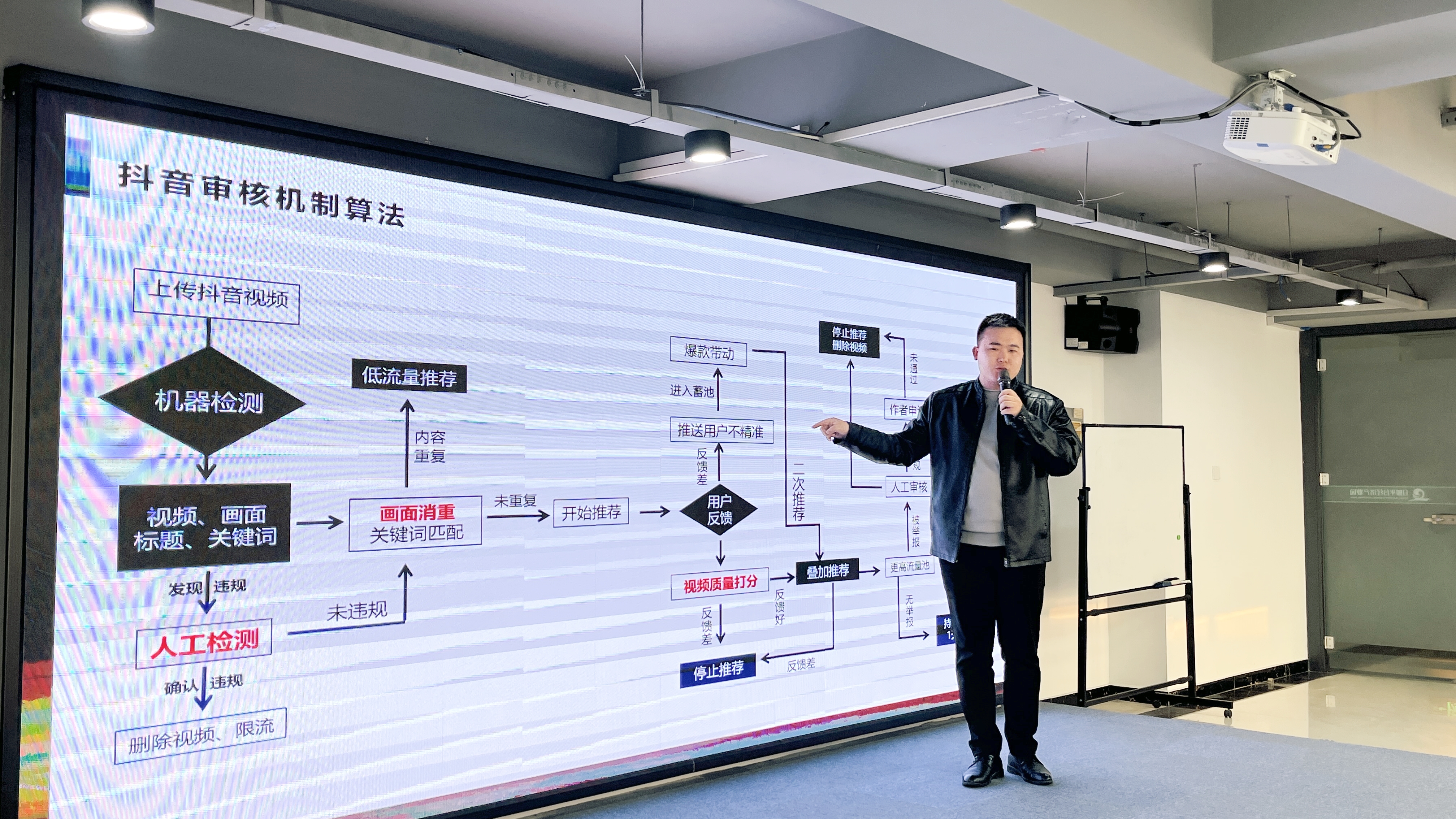 李春玉的分享站在了实用的角度,从抖音运营的算法机制到做号起号的知识技巧都为大家做出了全面细致的讲解,提到了很多新媒体运营工作中难以注意到的小细节要点,让大家惊叹之余又带着恍然,不知不觉跟随课程走进新媒体的世界。除了课程内容,李春玉在课程设计上也别有亮点,用心寻找的案例视频生动有趣,配合干货满满的内容要点,从自身在岗位深耕的经验为出发点,结合园区、公司现有新媒体账号的运营现状,用总结到位的知识结晶将在场的参与者深深吸引,为大家带来了一场知识盛宴。